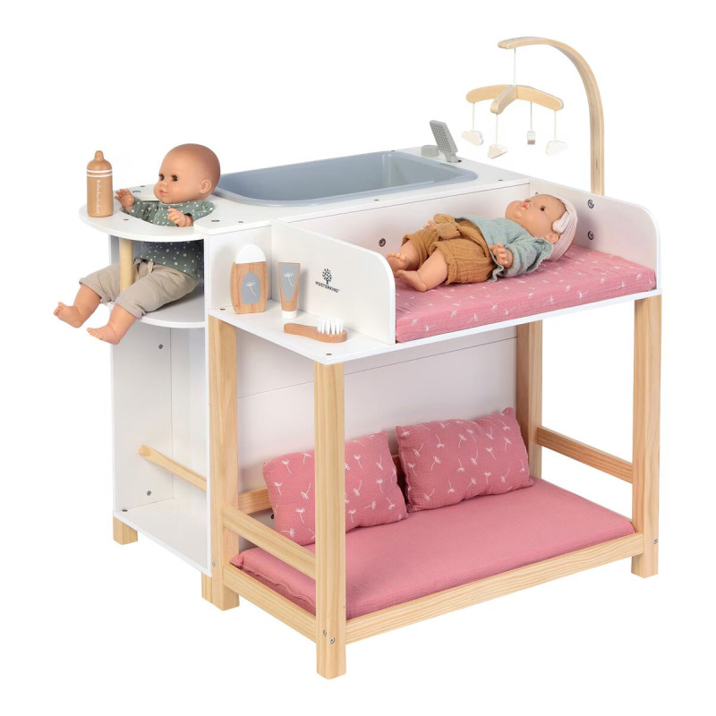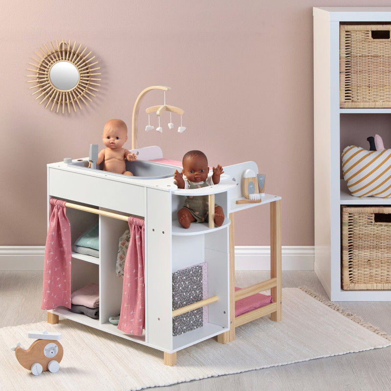 Dans la maison de poupée Viola de Musterkind, les petits parents de poupées à partir de trois ans pourront baigner leurs petits trésors, changer leurs couches, les nourrir et les mettre au lit.