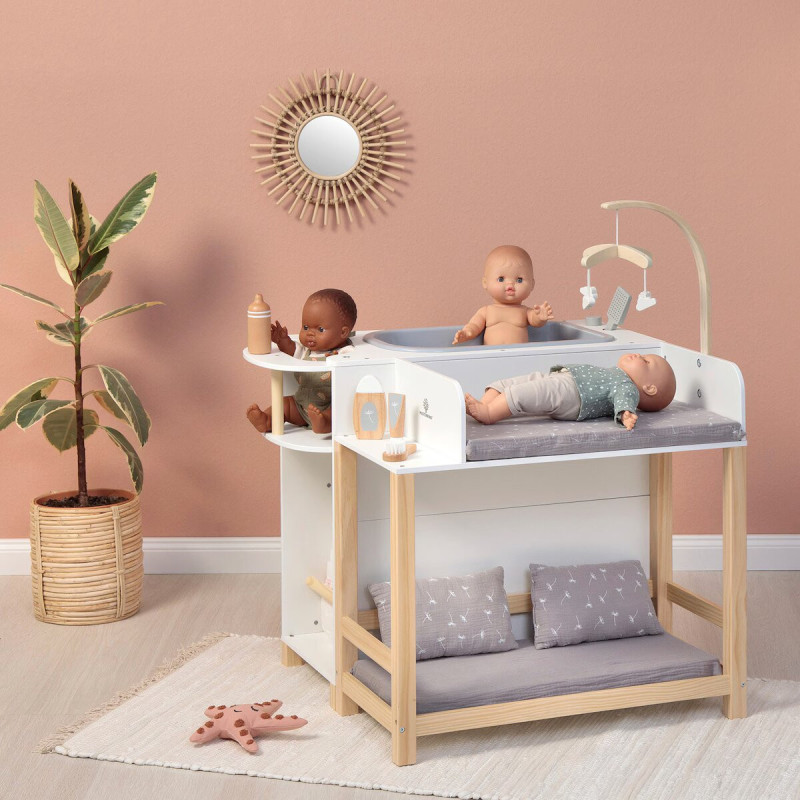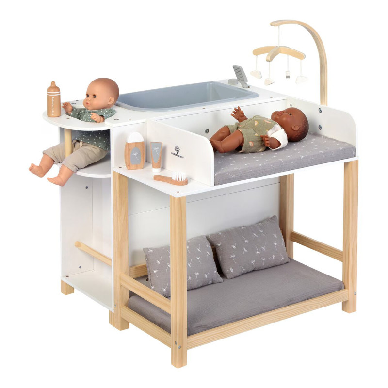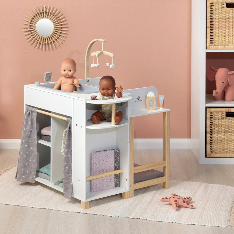 Dans la maison de poupée Viola de Musterkind, les petits parents de poupées à partir de trois ans pourront baigner leurs petits trésors, changer leurs couches, les nourrir et les mettre au lit.